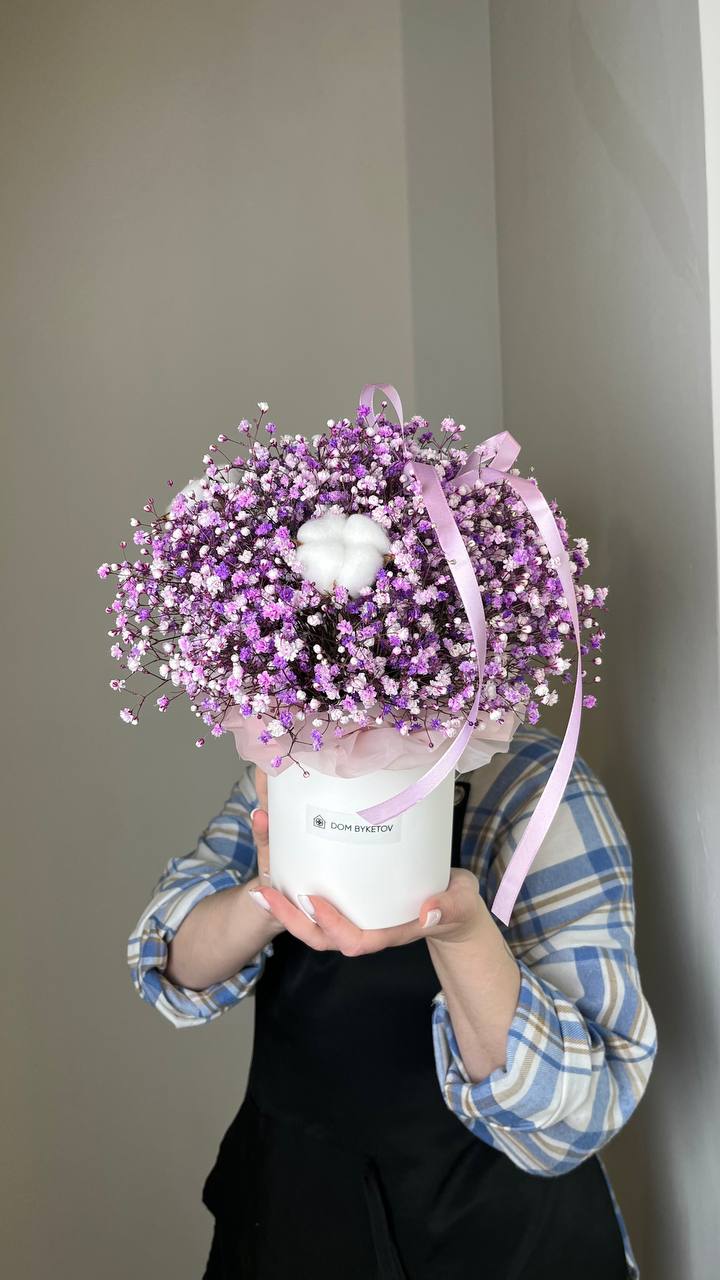 «Гипсофилы с хлопком» — нежность природы у вас дома! Эти изысканные букеты подарят атмосферу легкости и романтики, создавая уютную обстановку в каждом уголке вашего пространства. Длительный срок свежести цветов позволяет наслаждаться их красотой долгое время, а мягкий объем хлопка добавляет композиции воздушности и завершенности. Идеальный выбор для украшения интерьера или оригинального подарка близким людям.