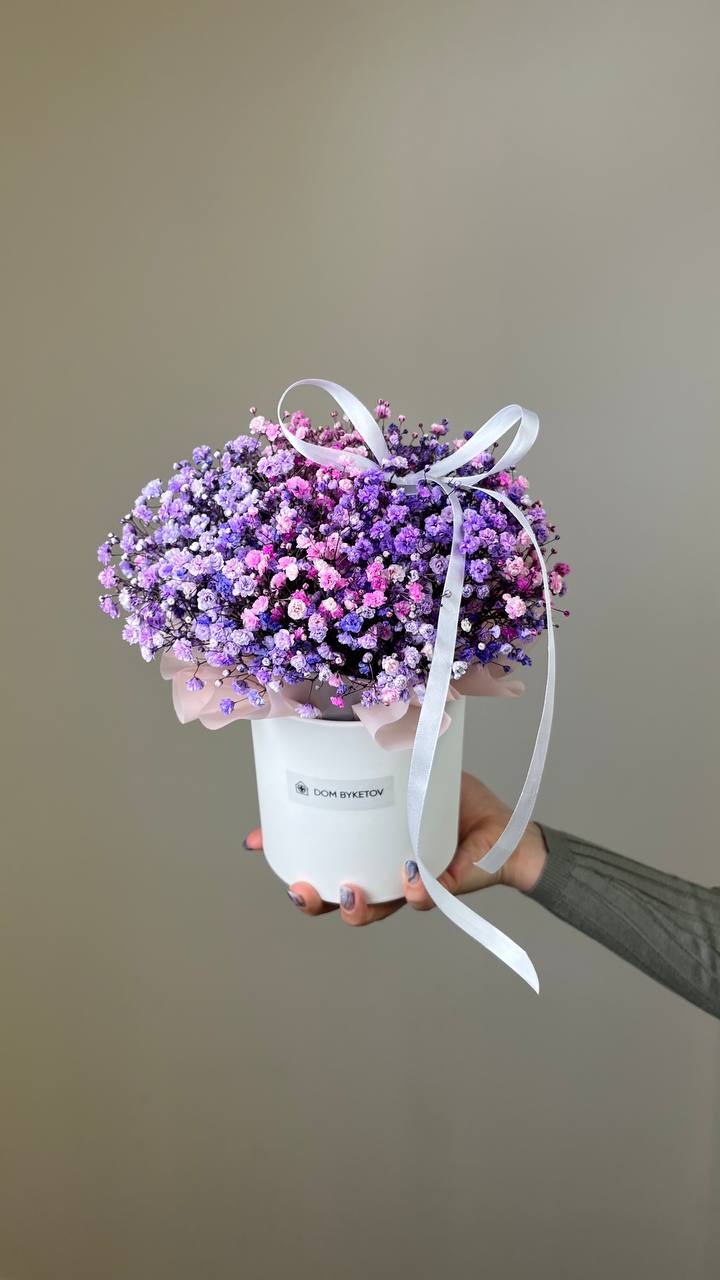 "Коробочка гипсофил" — элегантное решение для стильного подарка! Яркие цветы гипсофила создадут атмосферу нежности и романтики в любом интерьере. Природная красота растений подчеркнет ваш вкус и внимание к деталям. Короткий срок доставки сохранит свежесть цветов. Дари радость близких с первым букетом от нас!
